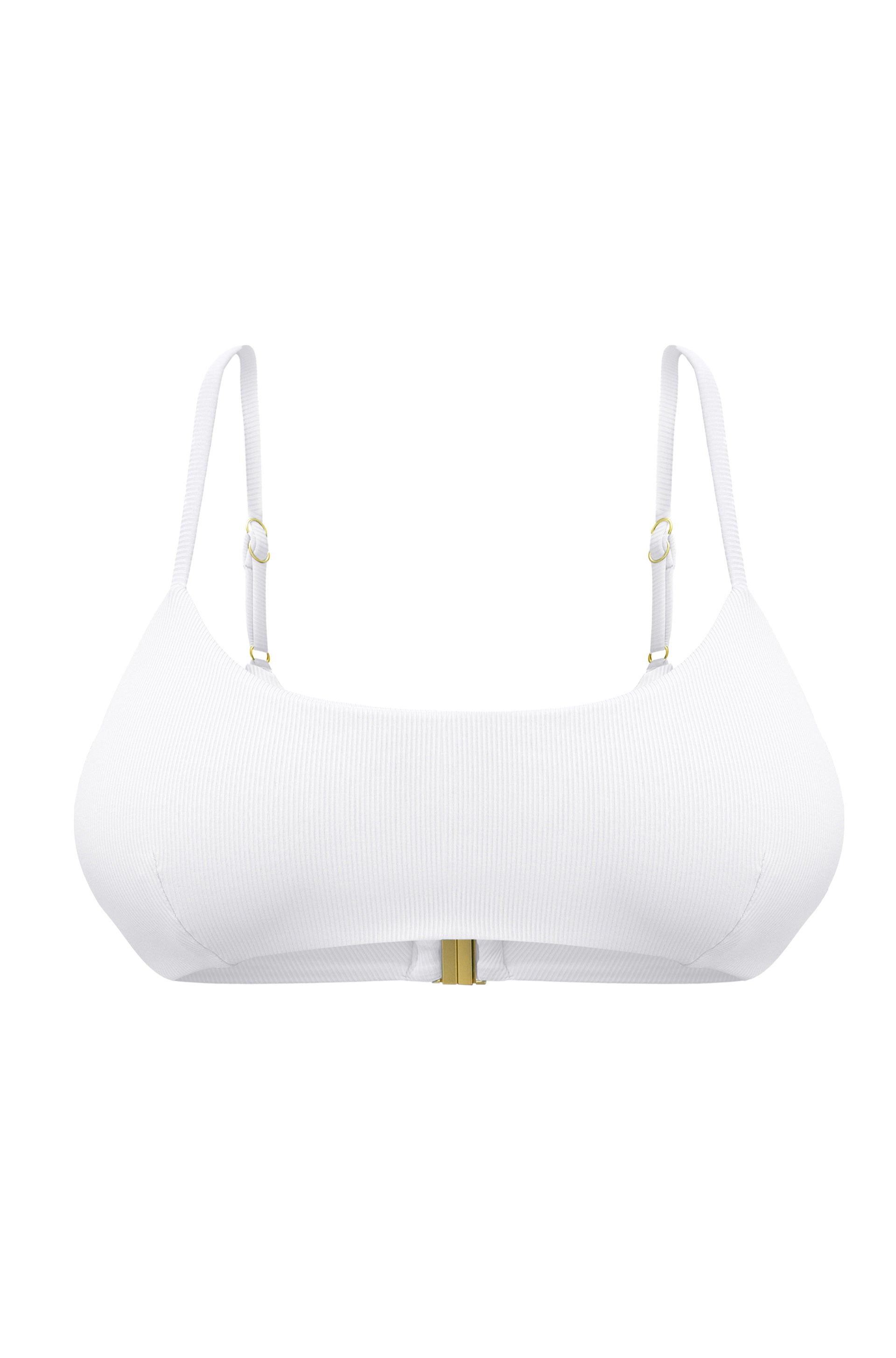 The sporty crop style allows for ease of movement and is perfect for any active beach day, while the adjustable straps provide a customizable fit for maximum support. This versatile top is perfect for pairing with any of our swim bottoms, making it a must-have for any beach or pool day.